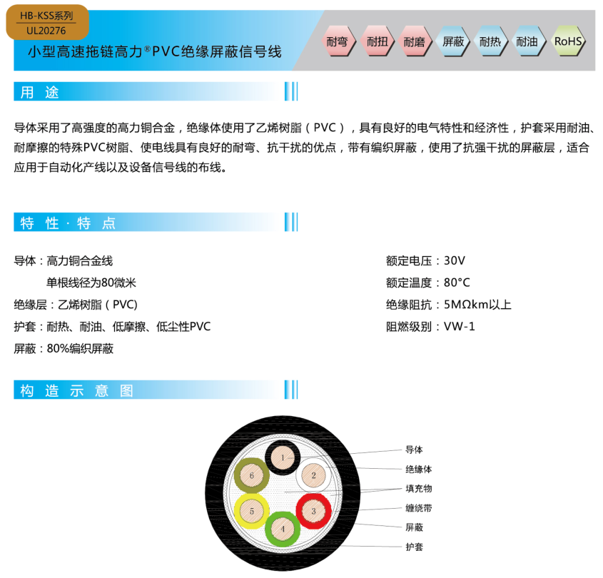 PVC绝缘屏蔽信号线