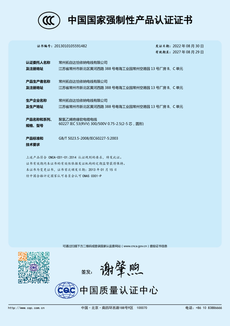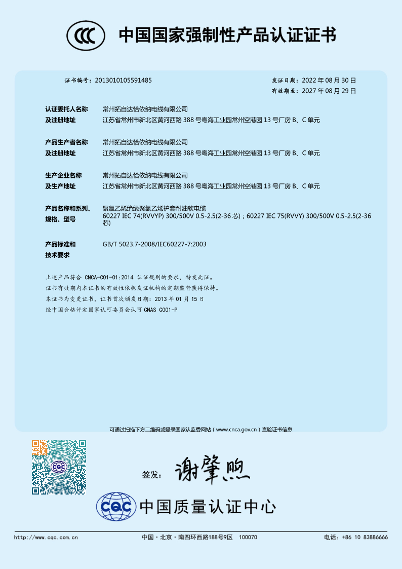 Changzhou Tatsuta Chugoku Electric Wire&Cable Co.,Ltd
